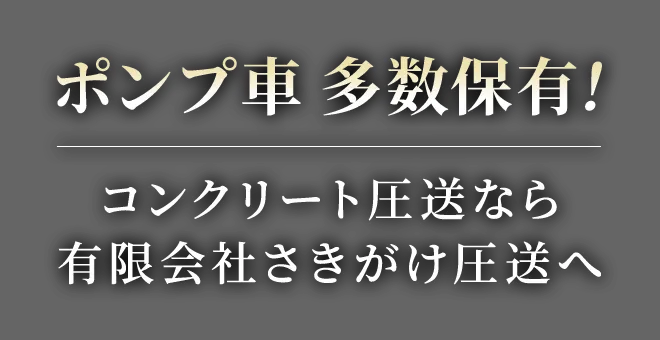 有限会社さきがけ圧送のホームページへようこそ。弊社は兵庫県神戸市を拠点に、コンクリート圧送業を手がけております。商業施設やビルをはじめ、店舗、学校、戸建て住宅、マンションなどさまざまな建物を対象に、新設工事・改修工事どちらにも対応しております。